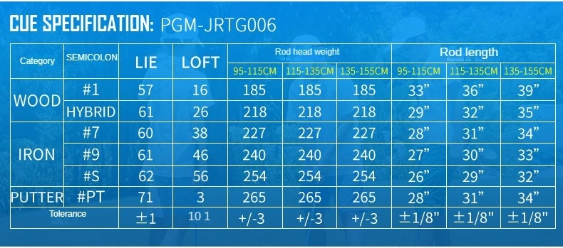 PGM Children's Left Hand Golf Club Sets 120-165cm Height Boy Girl Kids Junior Learning Iron Carbon Rod Putter Headcover JRTG006